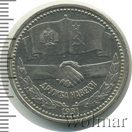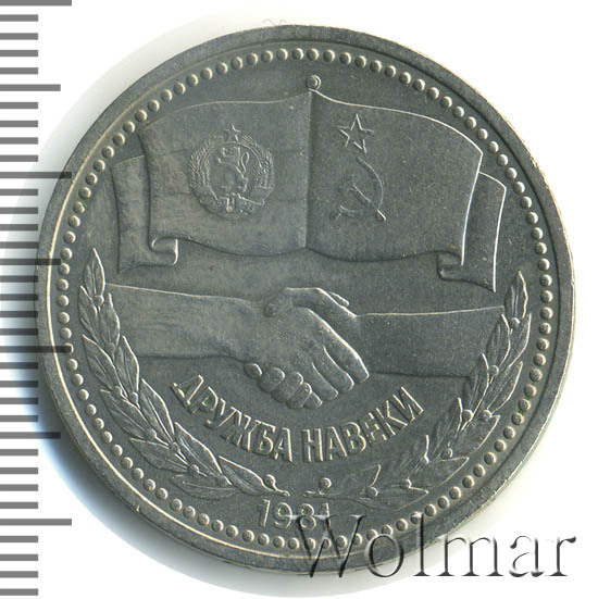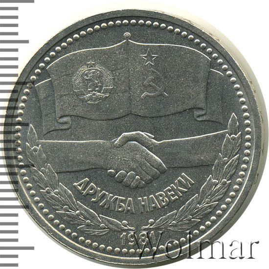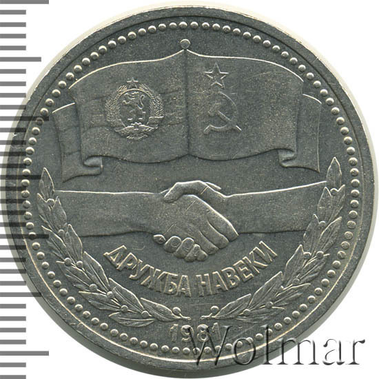 - Дружба навеки 1 рубль и 1 лев 1981 года на юбилейных монетах СССР и Болгарии
