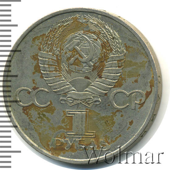 | Гурт | две вдавленные надписи «ОДИН РУБЛЬ», между ними две вдавленные квадратные точки. |