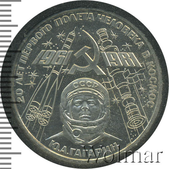 Аверс монеты 1 рубль 1981 года Гагарин proof