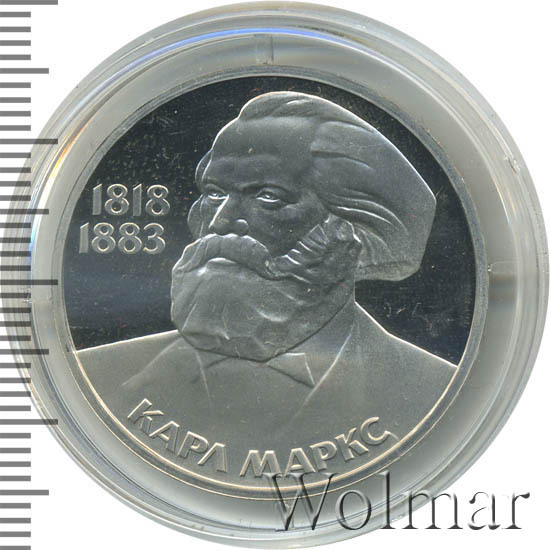 Государственным Банком СССР в 1983 году, была продолжена серия памятных и юбилейных монет, приуроченным к важным историческим датам. Одной из таких монет стал 1 рубль, выпущенный в обращение в связи со ста шестидесяти пятилетием со дня рождения Карла Маркса и столетием со дня его смерти.