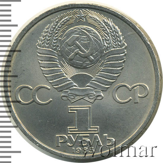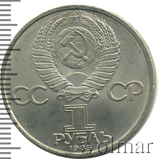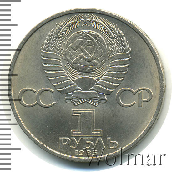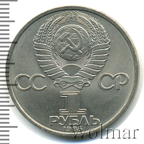Стоимость обычного юбилейного рубля 1985г. не велика, более подробно ознакомиться с ценами вы можете на страницах нашего каталога проходов и цен, отмеченных на торгах самых популярных нумизматических аукционов.