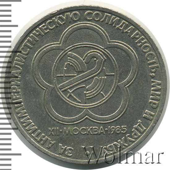 Реверс монеты 1 рубль 1985 года фестиваль