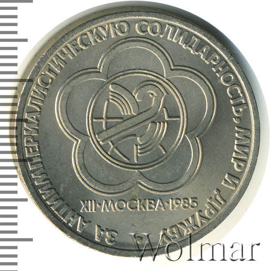 Аверс монеты 1 рубль 1985 года фестиваль