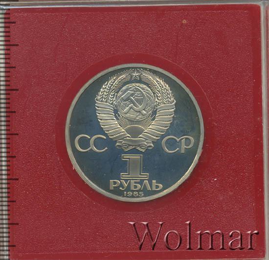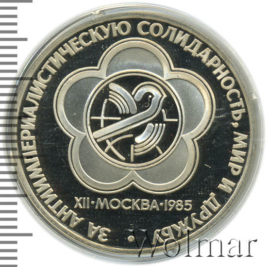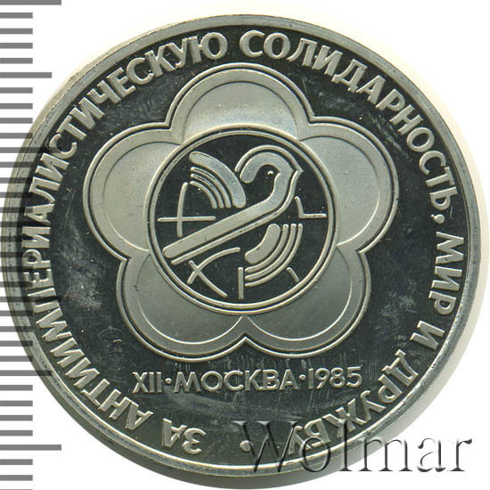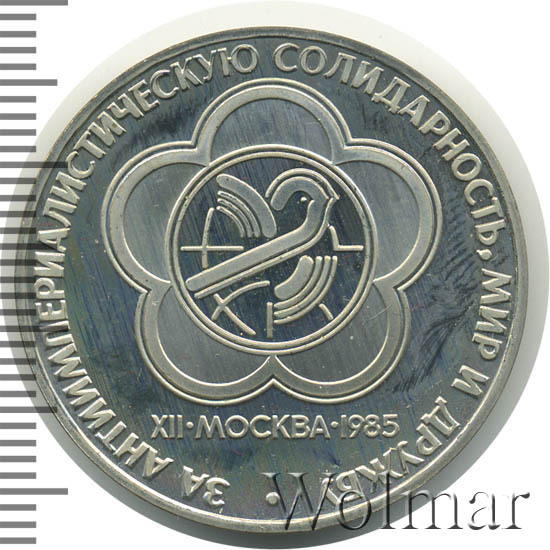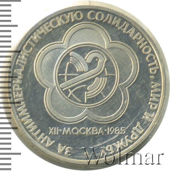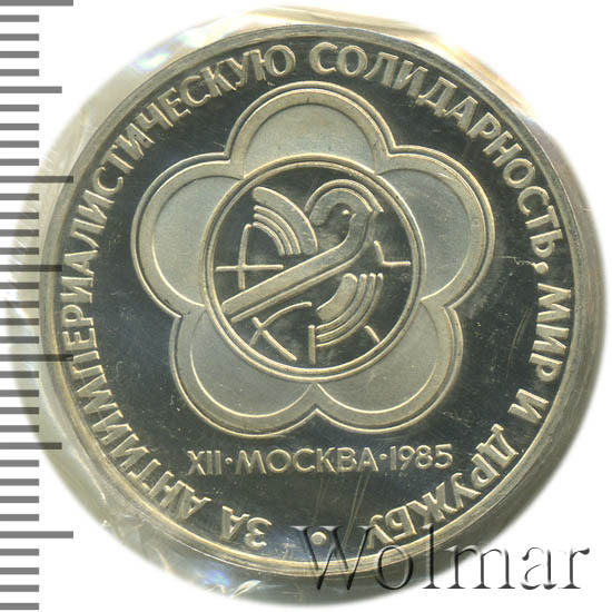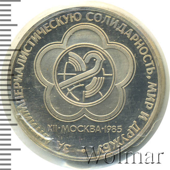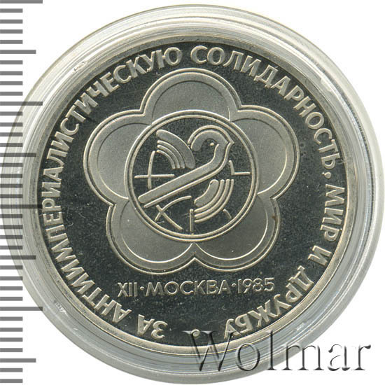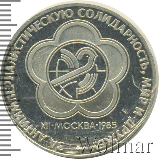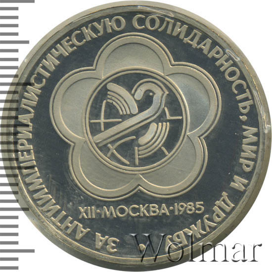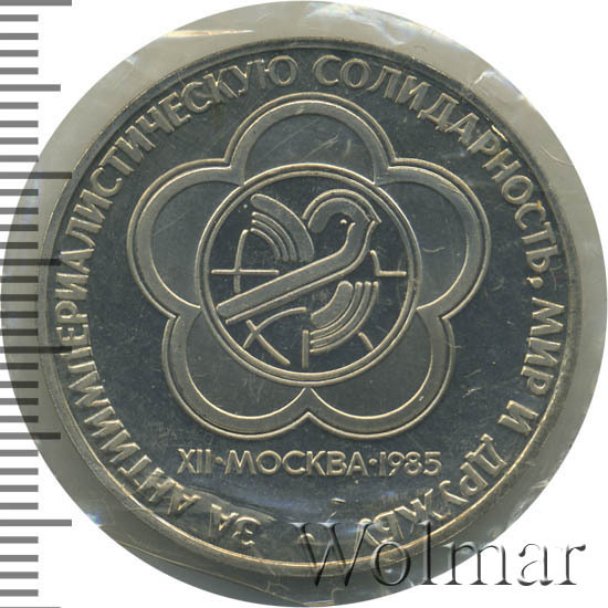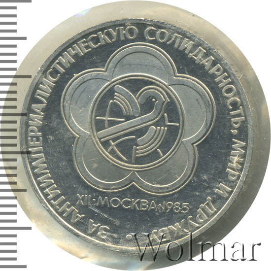 Реверс монеты 1 рубль 1985 года фестиваль, новодел proof