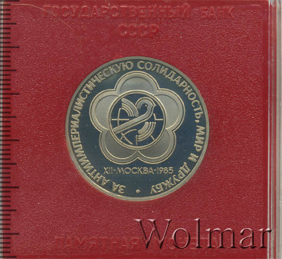 Аверс монеты 1 рубль 1985 года фестиваль, новодел proof