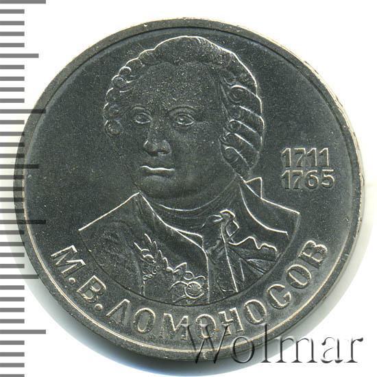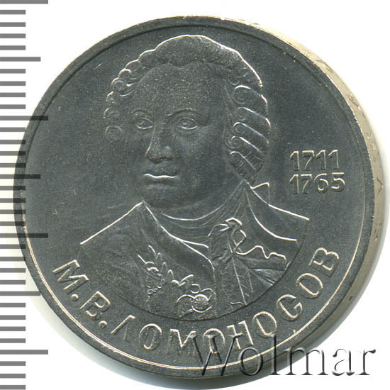 В одна тысяча восемьдесят шестом году, был продолжен выпуск серии юбилейных и памятных монет, посвященных видным деятелям науки и искусства, живших в нашей стране. Памятный рубль с погрудным изображением, на оборотной стороне, посвящённый 275 летию со дня рождения Ломоносова М.В., был выпущен в денежное обращение с Ленинградского монетного двора. Это был великий человек, чьё имя на ряду с Петром Первым, Пушкиным, Толстым олицетворяет могучую, удивительную страну – Россию.