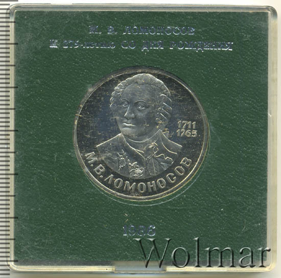 Аверс монеты 1 рубль 1986 года Ломоносов proof