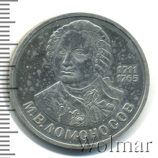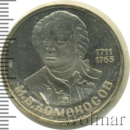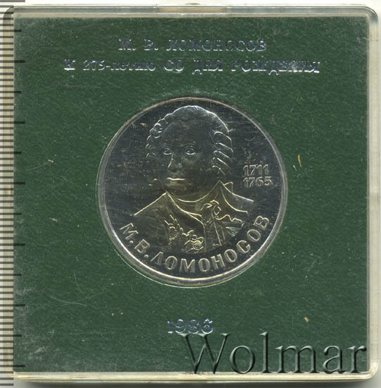 Памятные монеты, посвященные 275 летию со дня рождения Ломоносова М.В., отличаются по дизайну от монет в один рубль для регулярного денежного обращения Советского Союза. Ломоносов – первый русский ученый – естествоиспытатель мирового значения. Поборник отечественного просвещения и развития самостоятельной русской науки. Выпуск монет по улучшенной технологии чеканки пруф, был специально предназначен для собирателей серии юбилейных и памятных монет СССР. Технические характеристики и данные о тираже монеты, на странице ниже. Цена этой монеты, в идеальном состоянии, около трёх раз выше стоимости 1 руб. Ломоносов для обращения . В 1988 г., был произведён повторный выпуск этого полированного рубля . В новодельном выпуске найдена очень редкая и дорогая "перепутка". Более подробно ознакомиться с ценой 1 рубля (Ломоносов Proof) 1986 года выпуска вы можете на страницах нашего каталога проходов и цен, отмеченных на торгах самых популярных нумизматических аукционов.