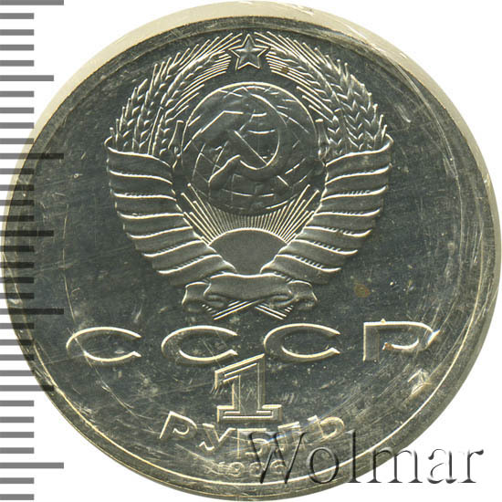 | Гурт | две вдавленные надписи «ОДИН РУБЛЬ», между ними две вдавленные квадратные точки. |