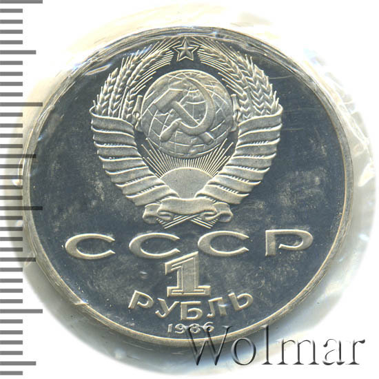 Реверс монеты 1 рубль 1986 года год мира, новодел proof