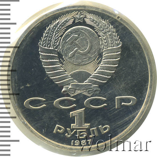 Реверс монеты 1 рубль 1987 года барельеф proof