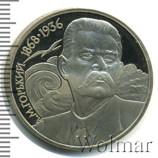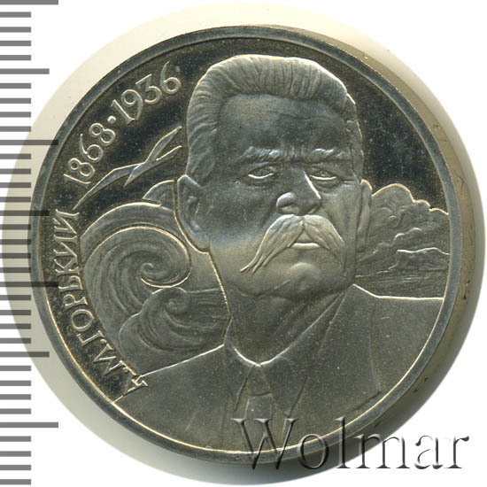 1 рубль 1988, посвященный 130-ти летию со дня рождения М.Горького, был изготовлен специально для коллекционеров в качестве Proof. Данная технология предполагает чеканку улучшенными полированными штемпелями на зеркальном поле монеты матового рельефа с высокой чёткостью самых маленьких деталей рисунка. Поскольку зеркальный пруф предназначен именно для нумизматов, монеты подобного качества требуют особо аккуратного обращения. Испортить пруф очень легко, достаточно просто взять монетку голыми пальцами без перчаток. Хранят такие изделия, как правило, в специальных капсулах или холдерах.