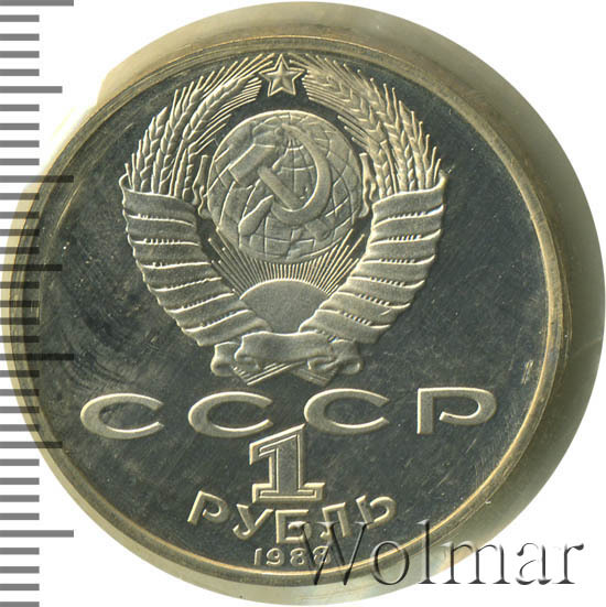 Стоимость 1 рубля 1988г. proof всего вдвое превосходит цену обычной юбилейной монеты этого года. Более подробно ознакомиться с ценой памятной монеты вы можете на страницах нашего каталога проходов и цен, отмеченных на торгах самых популярных нумизматических аукционов.