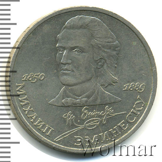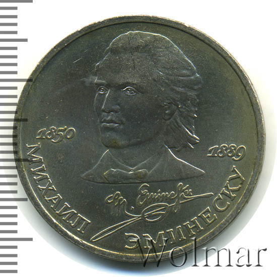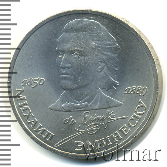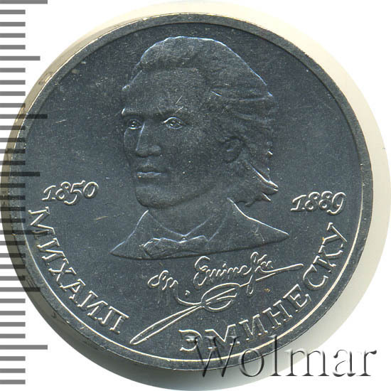 К 100 летию со дня смерти классика молдавской и румынской литературы Михая Эминеску госбанк СССР выпустил памятный рубль, средненьким тиражом порядка 2 млн. экземпляров, 200 тысяч штук из которых были изготовлены по технологии proof.