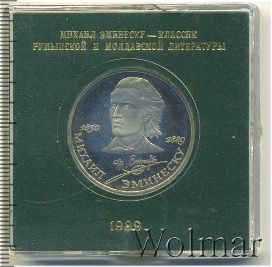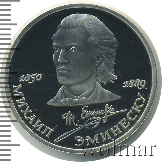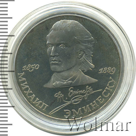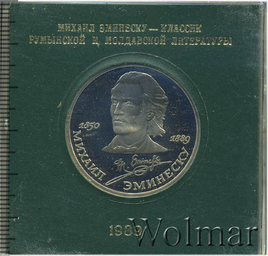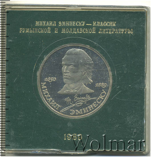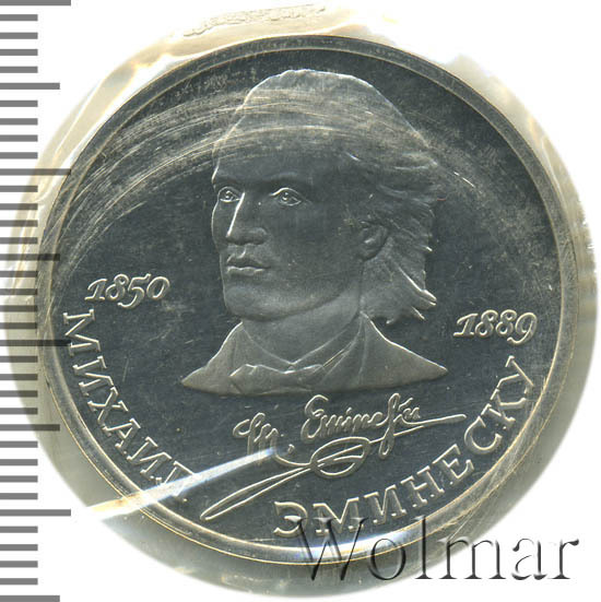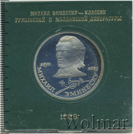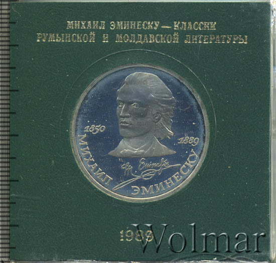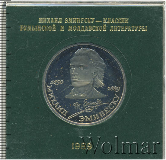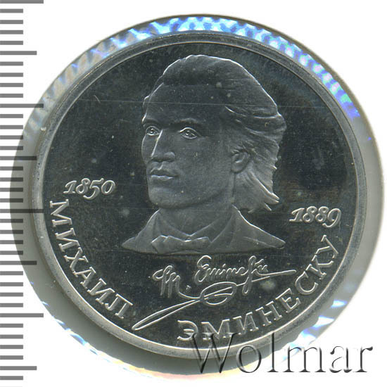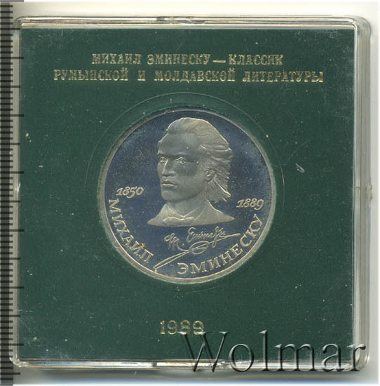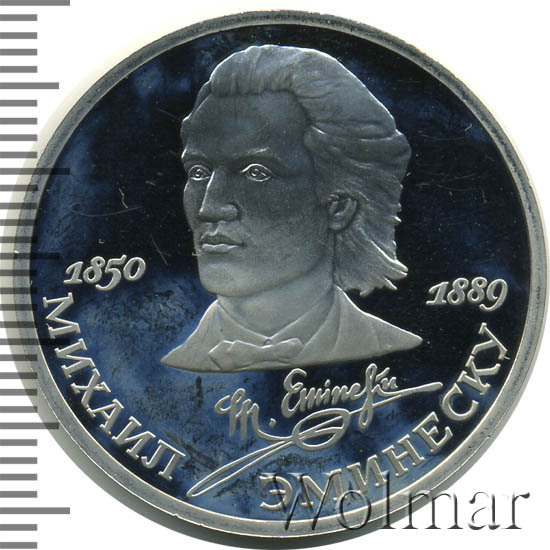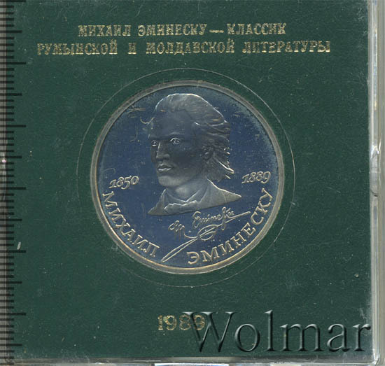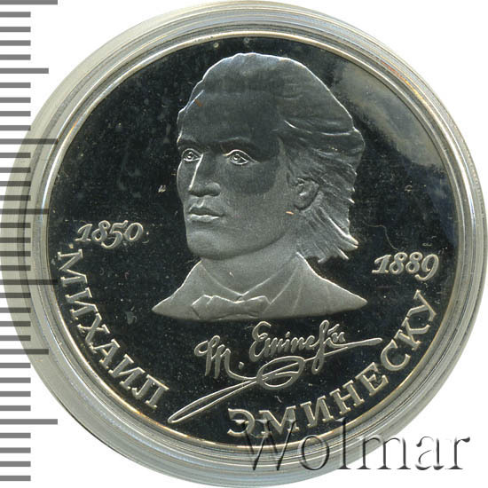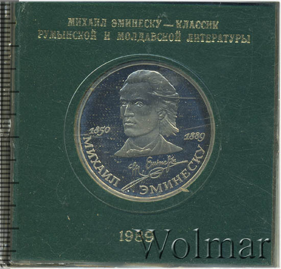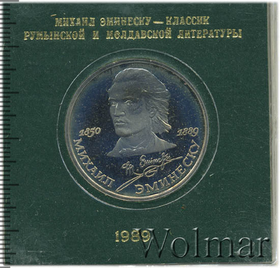 Аверс монеты 1 рубль 1989 года Эминеску proof