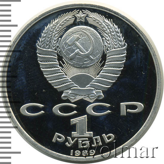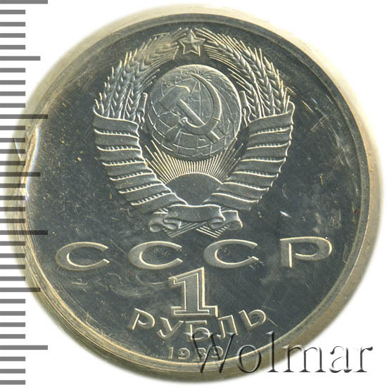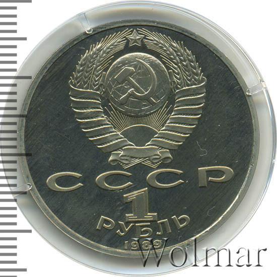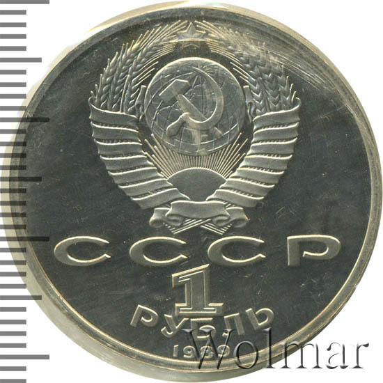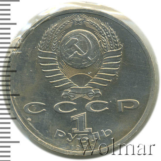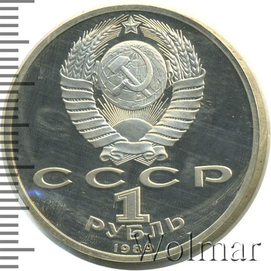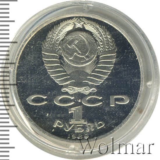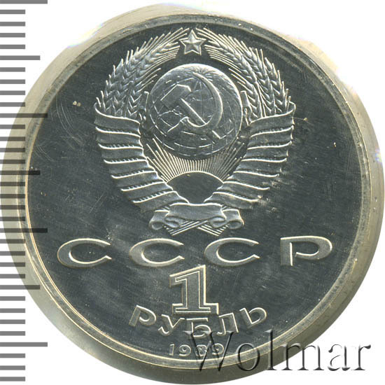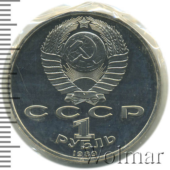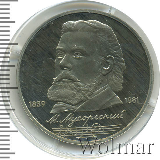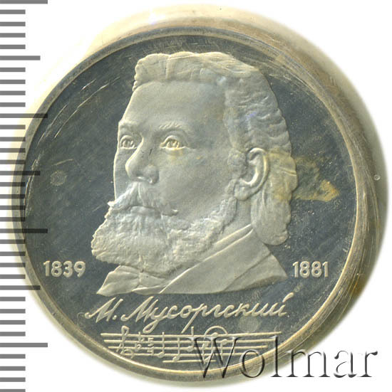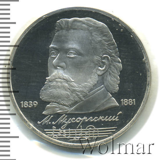 Стоимость 1 рубля 1989 года М.П.Мусоргский proof всего в два-три раза дороже стоимости обычной юбилейной монеты, посвящённой композитору. На странице ниже приведены подробные сведения и цены на 1 рубль 1989 150 лет М.П.Мусоргскому.