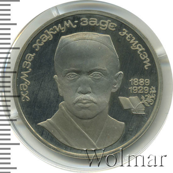 1 рубль, посвящённый столетию со дня рождения выдающегося узбекского поэта и драматурга Хамзы Хаким-заде Ниязи, был отчеканен по технологии proof, в количестве 200 тысяч экземпляров и в обычном исполнении, количеством около 1,8 млн. штук. Технология proof предполагает чеканку специальными штемпелями матового рельефа на зеркальном поле монеты с высочайшей проработкой и чёткостью самых мелких элементов рисунка. Монеты и медали в proof изготавливают специально для коллекционеров уже довольно давно, вторую сотню лет. Отметим, что далеко не все нумизматы считают такие изделия полноценными монетами, т. к. они изначально изготавливаются не для использования в обороте, а в качестве сувениров и продаются, как правило, уже в банковской упаковке.