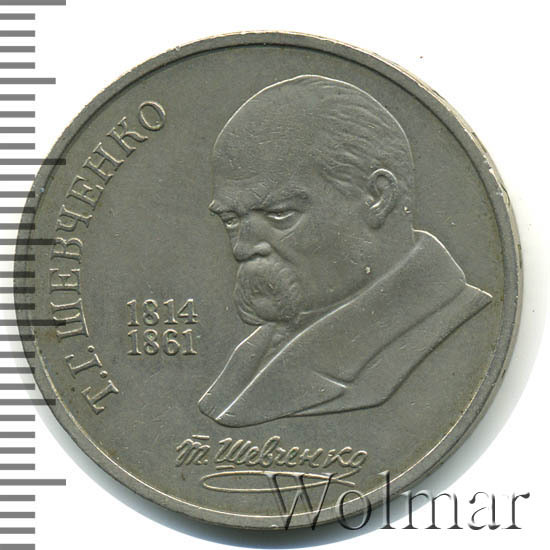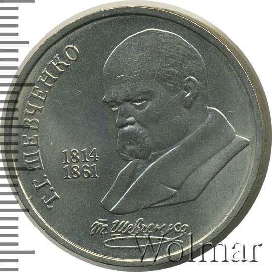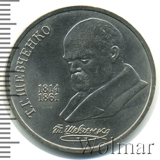 К 175-ти летию выдающегося украинского поэта, прозаика и художника Тараса Григорьевича Шевченко были выпущены памятные рубли, заявленным тиражом 3 миллиона экземпляров, из них 300 тысяч штук были отчеканены по технологии proof. Поэт писал на русском и украинском языках и оказал значительное влияние на современную украинскую литературу и национальный язык. В юные годы Шевченко был крепостным, рано осиротел и пережил много лишений и трудностей. Ему была бы уготовлена судьба крепостного живописца, но благодаря своему таланту художника и стечению обстоятельств он знакомится с самим Василием Андреевичем Жуковским, известными художниками Брюлловым и Венециановым, которые ему здорово помогли. За баснословную сумму по тем временам 2,5 тысячи рублей была таки куплена свобода для молодого одарённого поэта.