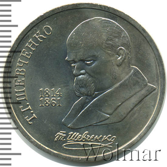 Аверс монеты 1 рубль 1989 года Шевченко