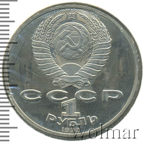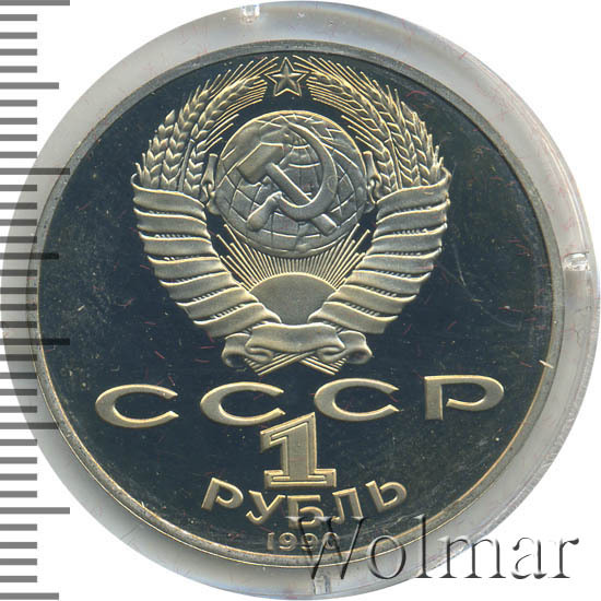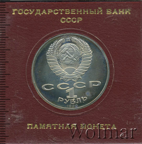 Тираж юбилейной монеты составил порядка 3 миллионов экземпляров, из них 400 тысяч были отчеканены в качестве Proof. Цена 1 рубля 1990 улучшенного качества, всего в два-три раза превышает стоимость обычной юбилейной монеты, более подробно ознакомиться с ценами вы можете на страницах нашего каталога проходов и цен, отмеченных на торгах самых популярных нумизматических аукционов.