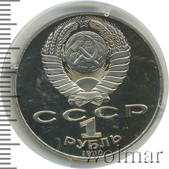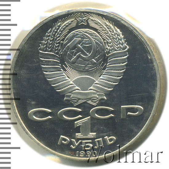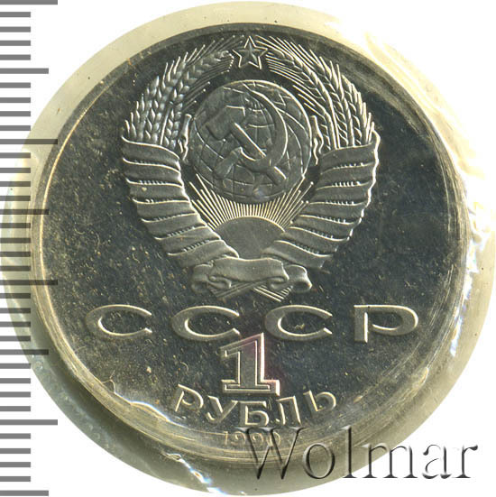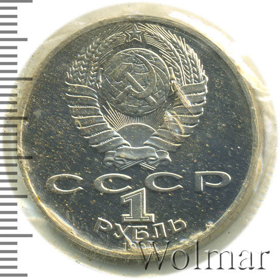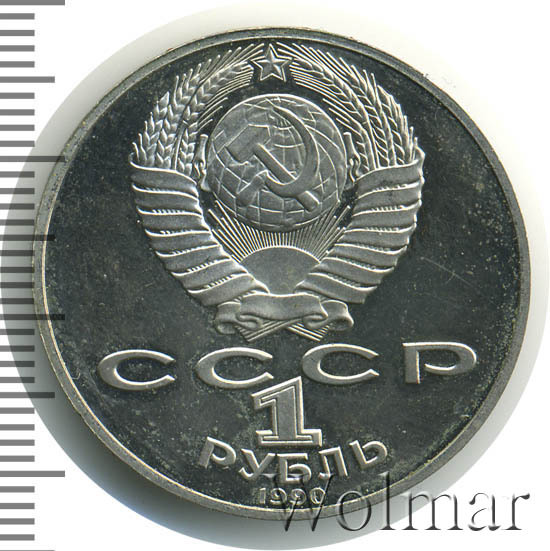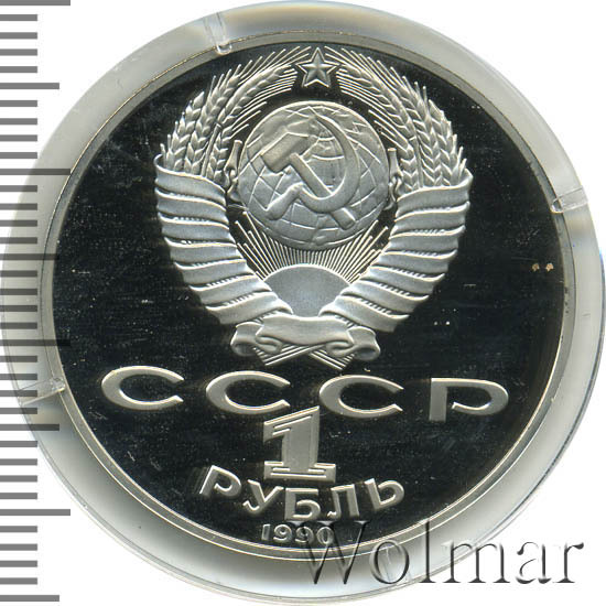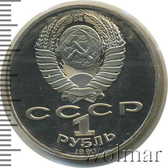 Тираж юбилейной монеты составил порядка 3-х миллионов экземпляров, из них только 400 тысяч были отчеканены в качестве Proof. Цена 1 рубля 1990 улучшенного качества относительно не большая, в два-три раза превышает стоимость обычной юбилейной монеты. Более подробно ознакомиться с ценами вы можете на страницах нашего каталога проходов и цен, отмеченных на торгах самых популярных нумизматических аукционов.