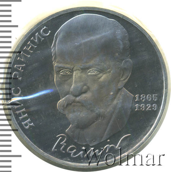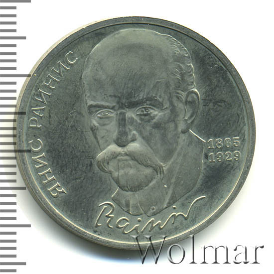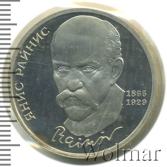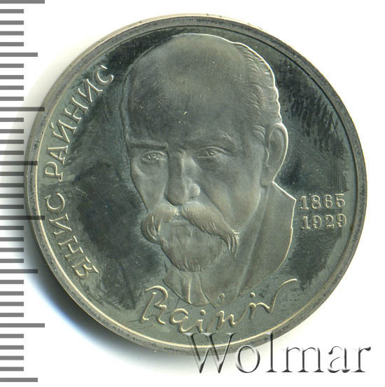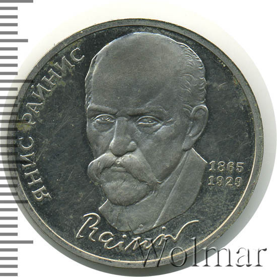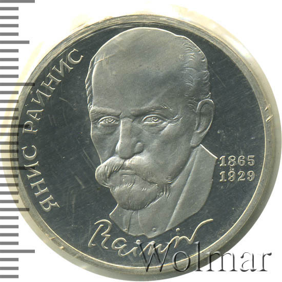 Аверс монеты 1 рубль 1990 года Райнис proof