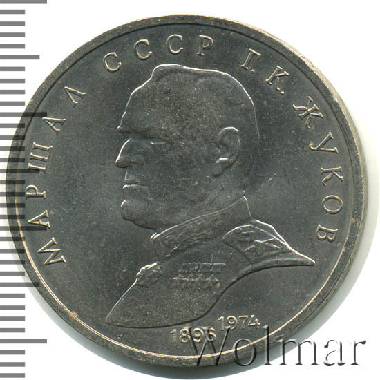 1 рубль. Маршал СССР Г.К. Жуков Аукцион: Wolmar Standart Состояние: XF+/AU | 05.11.2025 |