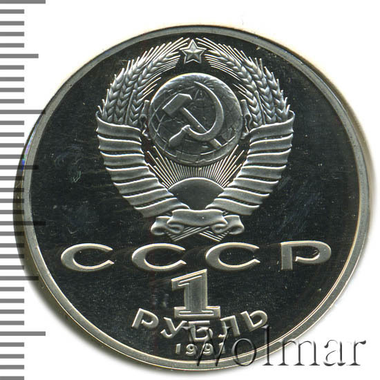 Аверс монеты 1 рубль 1991 года Лебедев proof