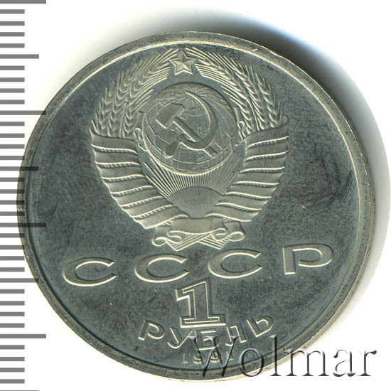 | Гурт | две вдавленные надписи «ОДИН РУБЛЬ», между ними две вдавленные квадратные точки. |