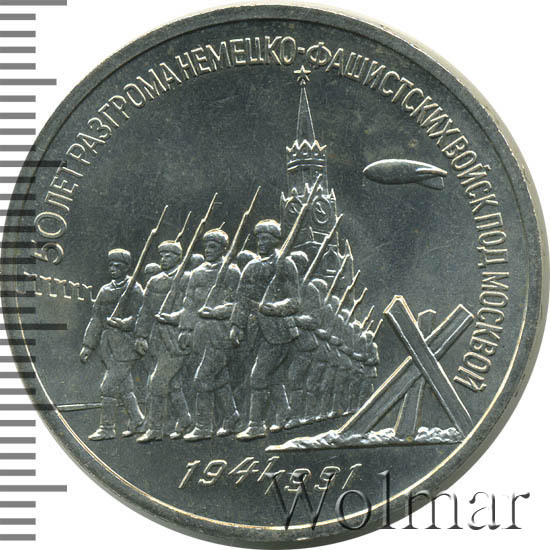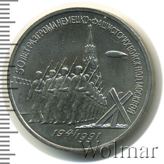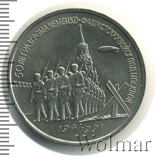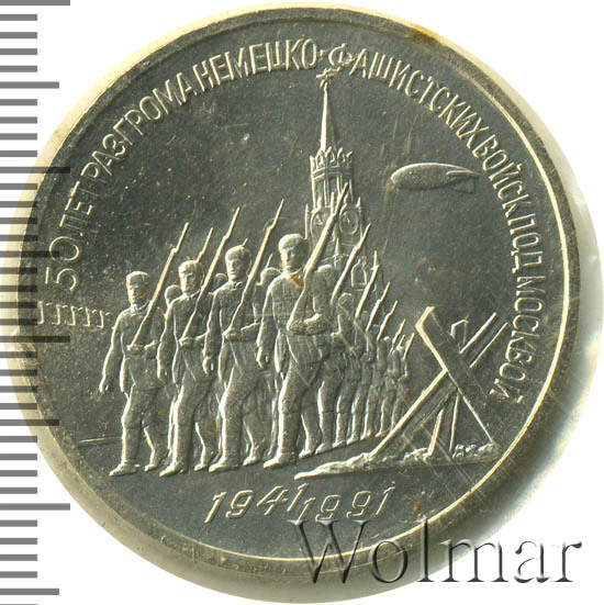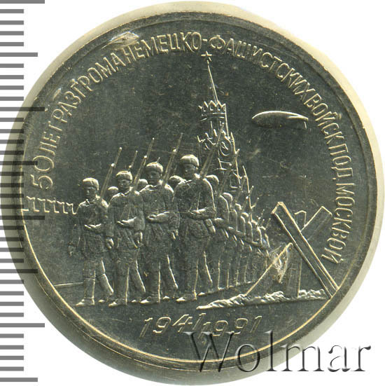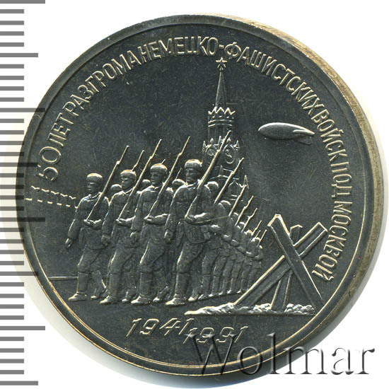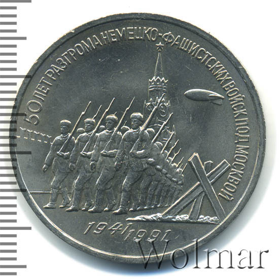 Аверс монеты 3 рубля 1991 года разгром под Москвой