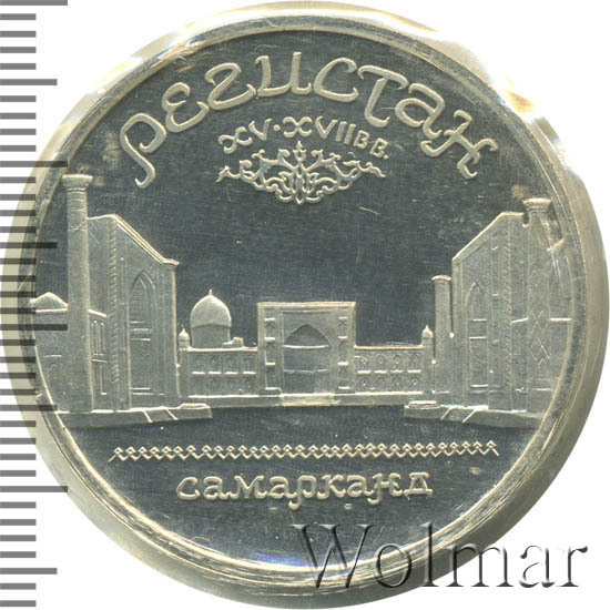 Реверс монеты 5 рублей 1989 года Регистан proof