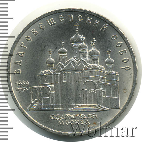 Аверс монеты 5 рублей 1989 года Благовещенский собор