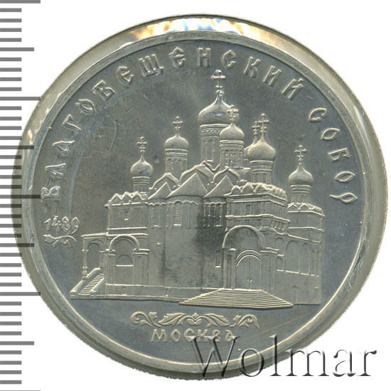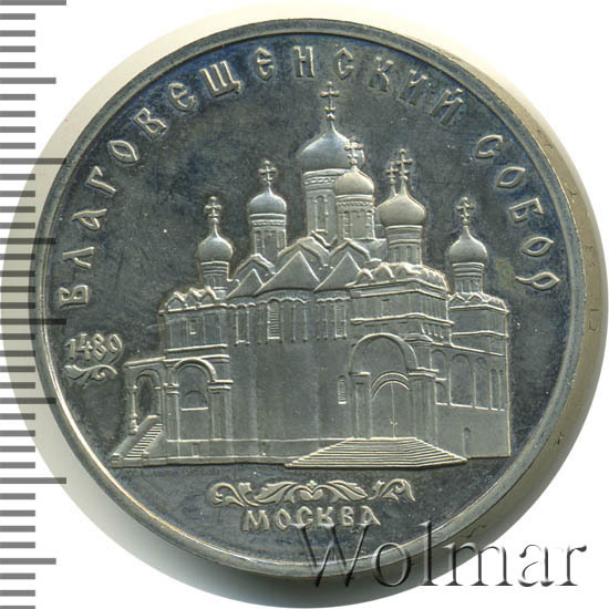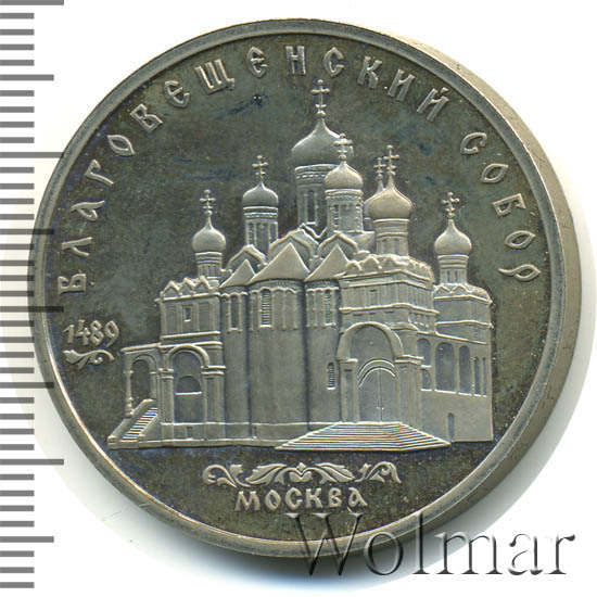 Реверс монеты 5 рублей 1989 года Благовещенский собор proof