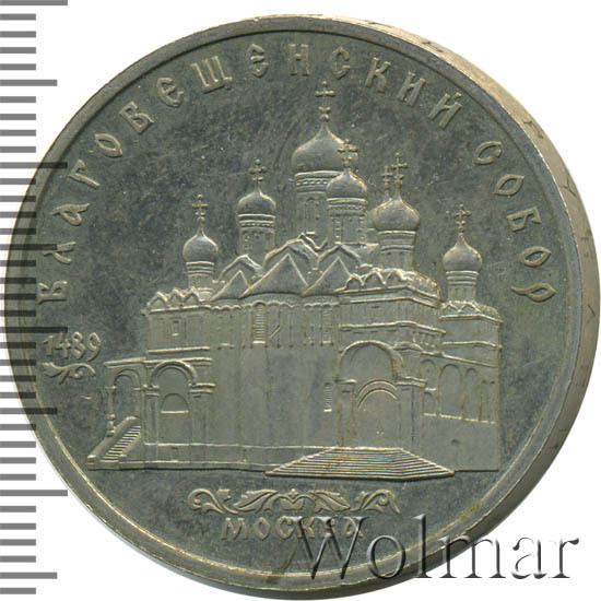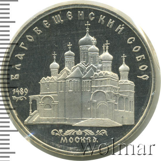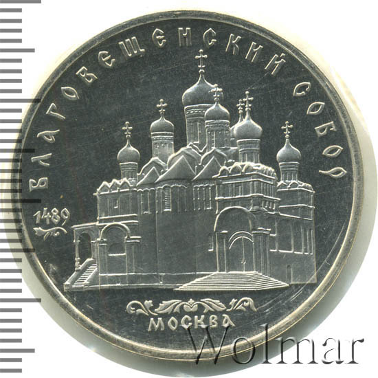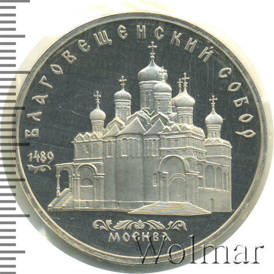 Аверс монеты 5 рублей 1989 года Благовещенский собор proof