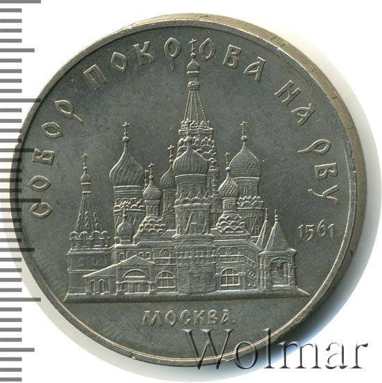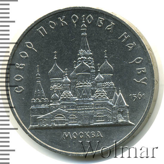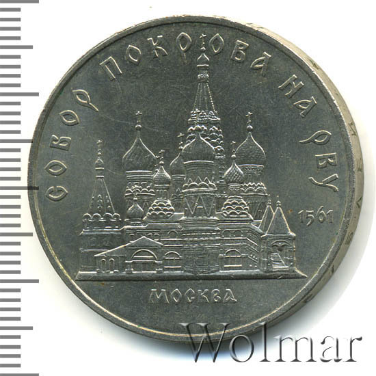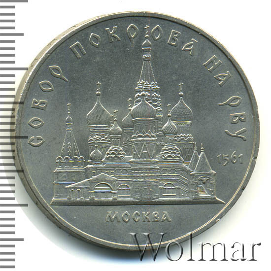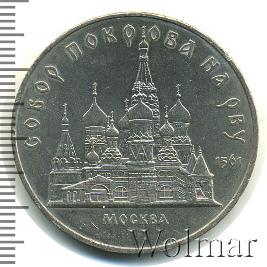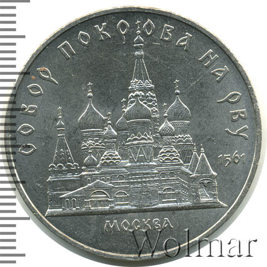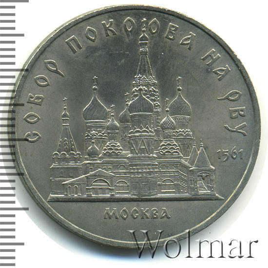 Аверс монеты 5 рублей 1989 года Покрова на Рву