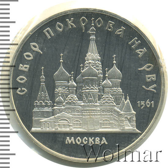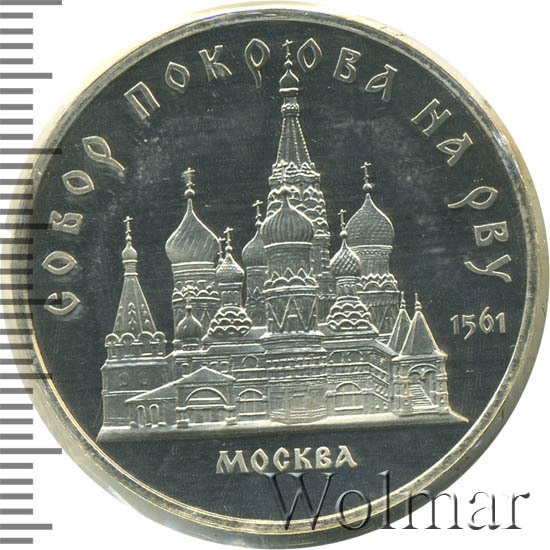 Реверс монеты 5 рублей 1989 года Покрова на Рву proof