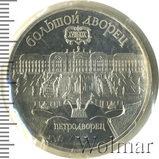 Реверс монеты 5 рублей 1990 года Петродворец proof