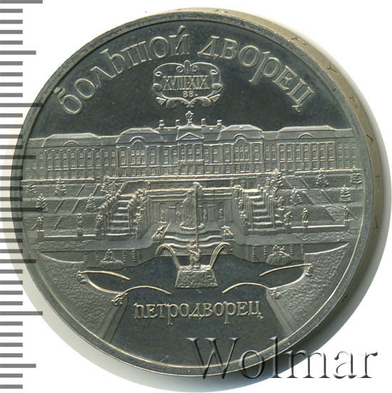 Аверс монеты 5 рублей 1990 года Петродворец proof