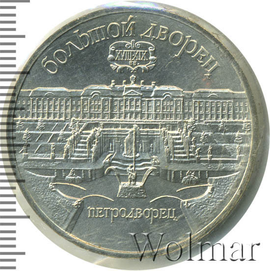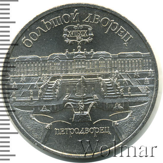 Цена на монету 5 рублей 1990 года Петродворец на сегодня, 23 октября 2025 года