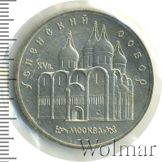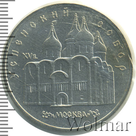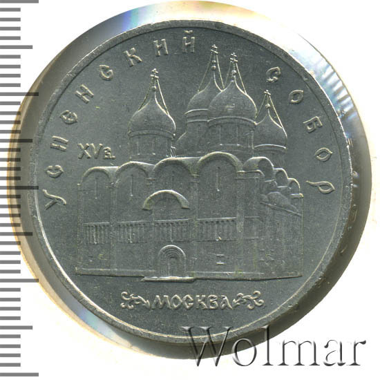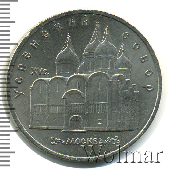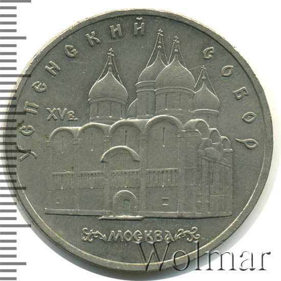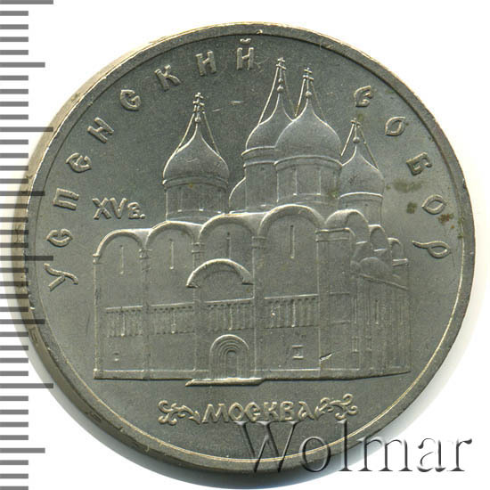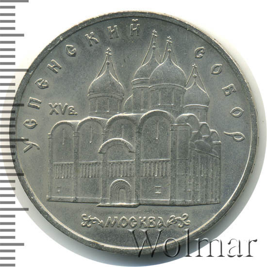 Аверс монеты 5 рублей 1990 года Успенский собор