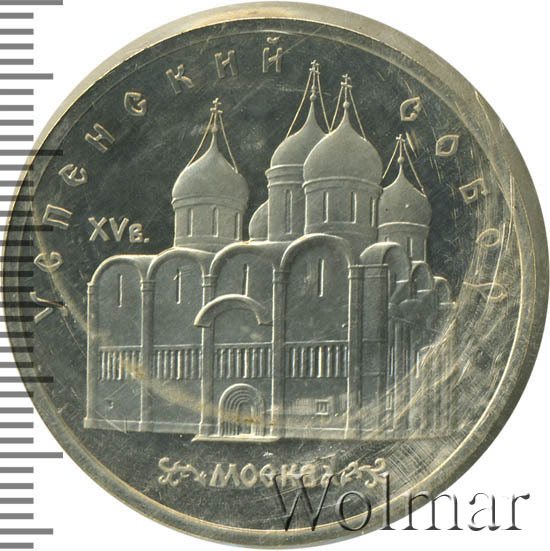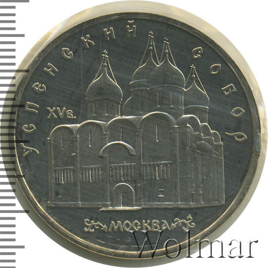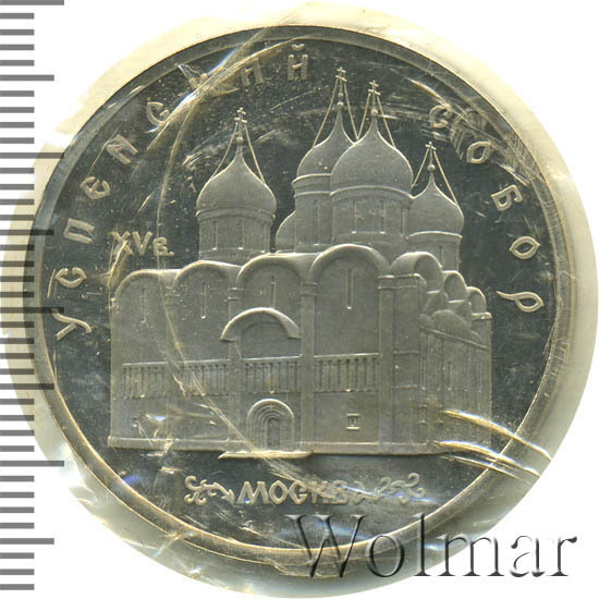 Реверс монеты 5 рублей 1990 года Успенский собор proof