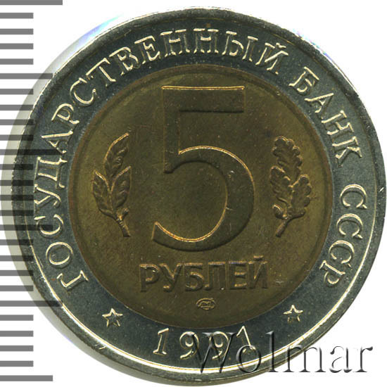 - 5 рублей 1991 года. Цена монеты и банкноты
