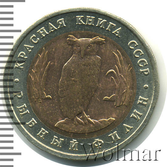 Реверс монеты 5 рублей 1991 года ЛМД филин