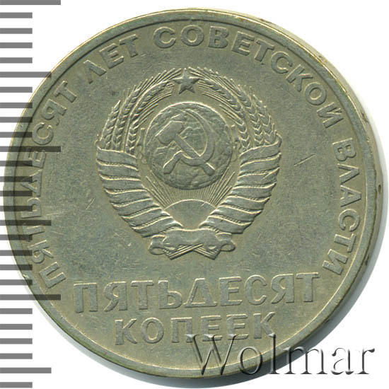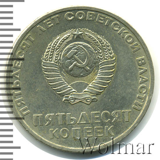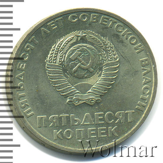 50 копеек. 50 лет Советской власти Аукцион: Wolmar Standart Состояние: XF | 17.09.2025 |