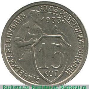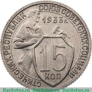 Чеканку монет в те годы осуществлял Ленинградский монетный двор. Монета достоинством в пятнадцать копеек относилась к группе старших номиналов, для которых предназначались мельхиоровые заготовки. Вес пятиалтынного той поры составляет 2,7 грамма, диаметр чуть не дотягивает до двух сантиметров (19,56 миллиметра). Толщину в различных источниках указывают в диапазоне от 1,2 до 1,4 миллиметра. На реверсе мы видим молотобойца работы Васютинского (о нём мы немало писали в других статьях, посвящённых монетам РСФСР и первых лет Советского Союза). Детальное изучение реверсов пока не выявило разновидностей по реверсу (для периода 1931-1934 годов у пятиалтынного только в 1931 году наблюдались варианты оборотной стороны). Аверс различается по количеству параллелей, проходящих под ударной частью молота. Для "Шт. 1.1" их две. С этим аверсом монета встречается реже. Сколько стоит 15 копеек 1933 года? За исключением новодела, цена каждого экземпляра зависит от состояния монеты, а не от рисунка на аверсе.