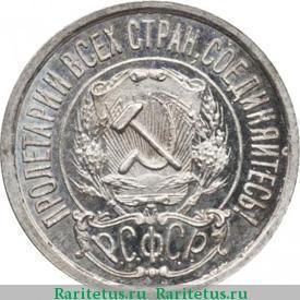 Куда интереснее положение дел с двугривенным. В период 1921-1922 годов на аверсе замечен только "Шт.1.1" и "Шт.1.2", а вот в 1923 году можно отыскать аж три варианта. На крайне малой части монет остался "Шт. 1.1". Это самый желанный вариант для находки в куче биллона. Он характеризуется короткими остями колосьев над щитом. Вариант "Шт.1.2" над щитом имеет колосья с длинными остями. Этот аверс встречается как на обычных монетах, так и на экземплярах, выполненных улучшенным чеканом. И наконец, "Шт.1.3". Здесь ости колосьев над щитом ещё длиннее. Кроме того, отличаются контуры букв надписи "Р.С.Ф.С.Р". Данный вариант присутствует и на улучшенном чекане (вот только отыскивать эту монету в кучах бесполезно).