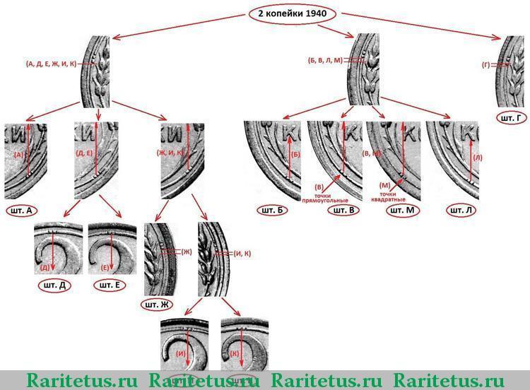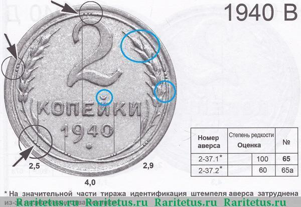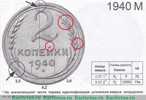 Любители разновидностей, заполучив монету достоинством в три или двадцать копеек, обычно бросаются пристально изучать аверс: форму звезды, гребёнку остей, расположение букв СССР относительно герба и друг друга. Совсем иная ситуация возникает, если в их руках оказывается 2 копейки 1940 года. Здесь тщательному изучению подвергается оборотная сторона.