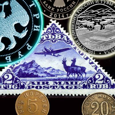 Монетные знаки для республики чеканил ЛМД. Изобретать ничего нового не стали и пустили в дело заготовки для соответствующих номиналов СССР. Серьёзным раритетом считаются пробные монеты 1933 года. Копейки с датой "1934" хоть и имеют небольшой тираж (для малочисленного населения не требовался серьёзный запас монетных знаков), но особой редкостью не являются. Непродолжительный выпуск монет успел поставить в свой ряд даже одну перепутку, когда на трёхкопеечной монете вместо овального разделительного знака объявилась розочка с аверса двадцати копеек. Где лучше всего искать монеты Тувы? Где угодно, только не в ней самой. После выступления местного руководства, призвавшего сохранять культурные и исторические ценности, в качестве примера которых были названы и монеты, обладатель бронзового или никелевого кругляшка, сохранившегося со времён независимости, может потребовать в обмен на неё автомобиль. А потом искренне станет негодовать Вашим словам, что его монета столько не стоит.