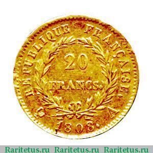 Не менее революционным для франка стал 1803 год. Именно тогда установлен стандарт его золотого содержания, впоследствии ставший базовым соотношением золота и серебра в Латинском валютном союзе. Золотые луидоры сменяются золотыми наполеондорами (ошибочно называемыми начинающими коллекционерами "наполеондолларами"). Но, невзирая на звучное название, мы видим на этой знаменитой монете номинал двадцать франков. Наполеондоры были в ходу не только во Франции, но с радостью принимались практически по всей Европе, фигурируя даже в габровских анекдотах.