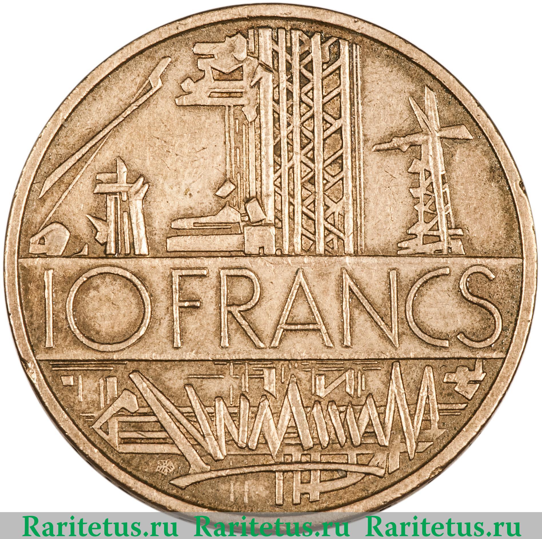 Оборотные монеты, в наименовании которых встречается слово "франк", чеканятся из медно-никеля. Исключение составляют памятные монеты. Существуют как монеты из благородных металлов (20 франков из серебра 835 пробы и 50 франков из золота 900 пробы), так и привычный нам биметалл, который представляет десятифранковый номинал.